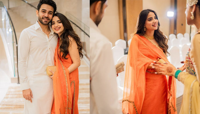 صبور کو اس شادی میں نارنجی روایتی جوڑے میں حسن کے جلوے بکھیرتے دیکھاگیا