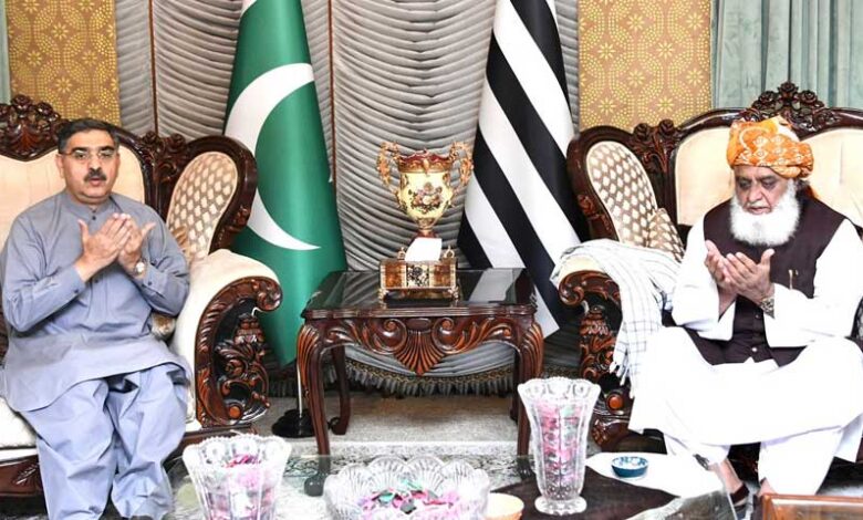 نگراں وزیراعظم انوار الحق کاکڑ کی فضل الرحمن کی رہائش گاہ پر ملاقات، کیا گفتگو ہوئی؟