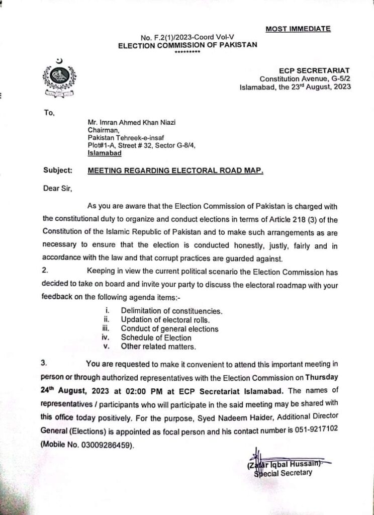 الیکشن کمیشن نے بڑی جماعتوں کے سربراہان سمیت عمران خان کو بھی طلب کر لیا