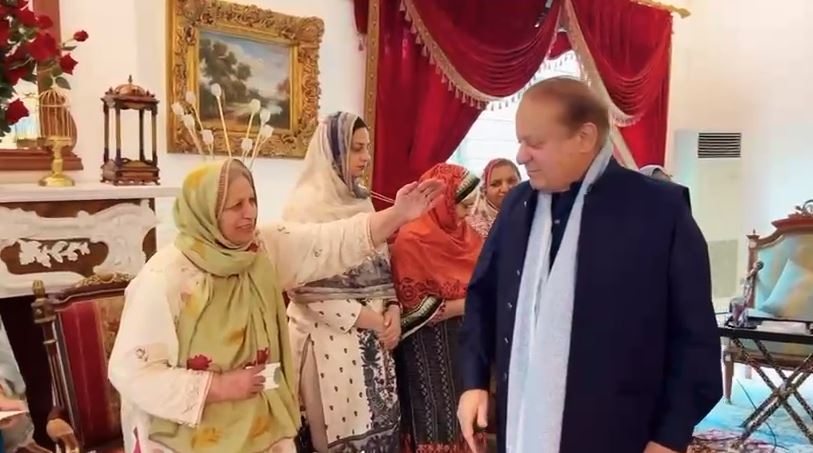مریم نوازشریف کی عافیت(دارلامان) میں مقیم 10خواتین کو حج پر بھیجنے سے پہلے ملاقات کے لئے پہنچ گئیں،اس موقع پر پاکستان مسلم لیگ کے قائدمحمد نوازشریف بھی بزرگ خواتین کی خواہش پرملنے کے لئے آگئے
