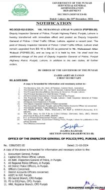 حکومت پنجاب نے سی ٹی او لاہور عمارہ اطہر کو تبدیل کر کے ڈی آئی جی اطہر وحید کو سی ٹی او ٹریفک لاہور تعینات کر دیا