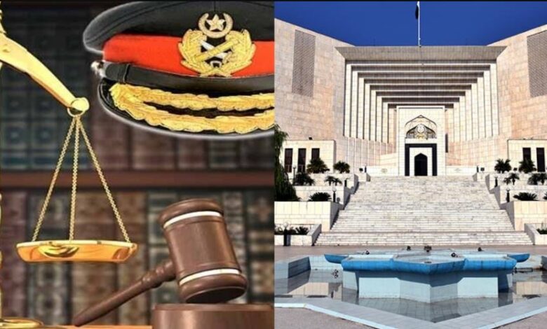 اسلام آباد (کھوج نیوز )جسٹس امین الدین کی سربراہی میں سپریم کورٹ کے 7 رکنی آئینی بینچ نے فوجی عدالتوں میں سویلینز کے ٹرائل کے فیصلے کے خلاف انٹرا کورٹ اپیل پر سماعت کی۔ جسٹس جمال مندوخیل، جسٹس محمد علی مظہر اور جسٹس حسن اظہر رضوی، جسٹس مسرت ہلالی، جسثس نعیم اختر افغان اور جسٹس شاہد بلال حسن بھی بینچ کا حصہ تھے۔