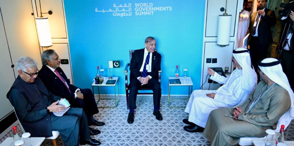 وزیرِ اعظم محمد شہباز شریف سے ورلڈ گورنمنٹس سمٹ کے موقع پر ڈی پی ورلڈ کے گروپ چیئرمین اور سی ای او سلطان احمد بن سلیم کی دبئی میں ملاقات ہوئی