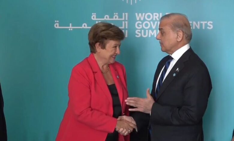 اسلام آباد(کھوج نیوز) وزیر اعظم آفس کے مطابق وزیر اعظم محمد شہباز شریف اور عالمی مالیاتی فنڈ (آئی ایم ایف) کی منیجنگ ڈائریکٹر (ایم ڈی) کرسٹالینا جارجیوا کی گزشتہ روز ورلڈ گورنمنٹس سمٹ (ڈبلیو جی ایس) 2025 کے موقع پر دبئی میں ملاقات ہوئی۔ملاقات میں پاکستان کے جاری آئی ایم ایف پروگرام اور حکومتی اصلاحات کے ذریعے حاصل ہونے والے میکرو اکنامک استحکام پر گفتگو کی گئی۔