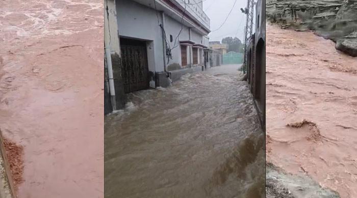 مردان میں بھی بارش سے کئی علاقے زیرِ آب آگئے، بارش کا پانی گھروں اور دکانوں میں داخل ہونے سے شہریوں کو شدید مشکلات کا سامنا ہے، شہریوں کا کہنا ہے کہ نکاسی آب کا نظام نہ ہونے سے پانی سڑکوں پر جمع ہو گیا ہے۔