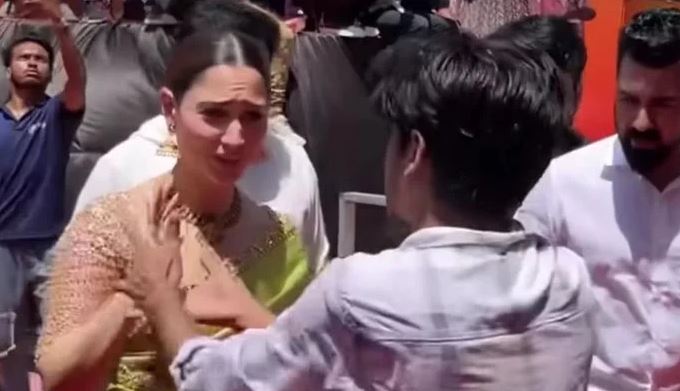 بھارتی اداکارہ تمنا بھاٹیہ کے ساتھ تصویر کھنچوانے کیلئے پرستار نے سیکیورٹی حصار توڑ دیا