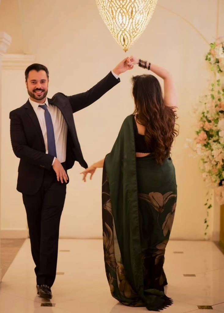 آخر ی تصاویر میں حریم فاروق ساڑھی پہنے ہوئے ہیں اور ان کا سلطان یعنی سعد سلطان بھی الگ ڈریس میں دیکھا جا سکتا ہے۔ اس نے سیاہ اور سفید رنگ کا روایتی پینٹ سوٹ زیب پہن رکھا ہے،۔ویڈیو میں دونوں اکٹھے خوشگوار موڈ میں دکھائی دے رہے ہیں۔حریم فاروق نے پوسٹ کے کیپشن میں سعد سلطان کو مخاطب کرتے ہوئے لکھا ہیکہ”سعدی! سالگرہ مبارک ہو، آپ میرے پاگل پن کو پُرسکون کرتے ہیں“۔