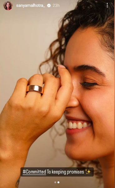 مذکورہ تصویر میں سنایا ملہوترا نے ہاتھ کی رنگ فنگر میں ایک رنگ پہنی ہوئی ہے جو سب کی توجہ کا مرکز بن چکی ہے۔سنایا ملہوترا نے اس تصویر کے ساتھ سب کو حیران کر دینے والا کیپشن لکھا کہ وعدے کو پورا کرنے کیلئے وعدہ کرلیا ہے۔یاد رہے سنایا ملہوترا کی یہ ایک اسٹوری ان کے مداحوں کو متجسس کر گئی ہے کہ کیا سچ میں اداکارہ نے منگنی کرلی ہے یا پھر یہ کسی اشتہار کا حصہ ہے۔مگر لگتا تو یہی ہے کہ سنایا کو من چاہا ہم سفر مل گیا ہے۔