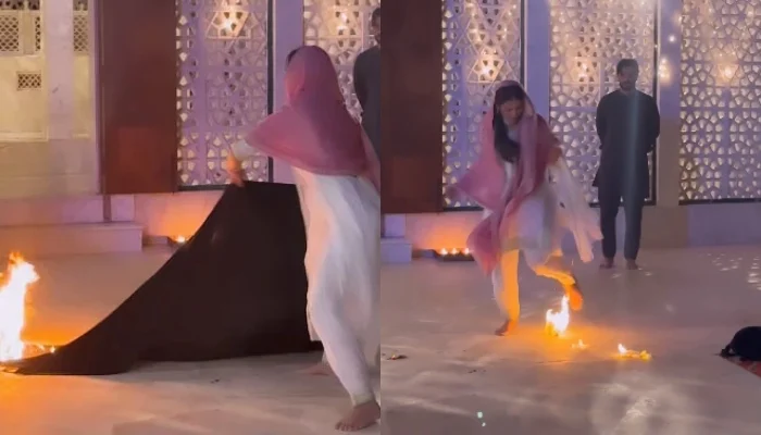 اسی اثنا میں عائزہ خان کا بازو مشعل کی لکڑی سے ٹکراتا ہے اور جلتی مشعل ان کے جسم کو جلاتے جلاتے رہ جاتا ہے۔جلنے کے خوف سے عائزہ خان ویڈیو میں زور سے چیخ کر پیچھے ہٹتی بھی نظر آئیں لیکن پھر اپنے خوف پر فی الفور قابو پاتے ہوئے انہوں نے گھوڑے کی رسی کو نہیں چھوڑا اور آگ کی جانب بڑھتے گھوڑے کو کھینچ کر بچا لیا۔اس پوسٹ کے کیپشن میں عائزہ خان نے لکھا کہ ‘عائزہ خان کے جلنے سے بال بال بچنے کی دوسری قسط، لیکن کم از کم انہوں نے گھوڑے کو نقصان پہنچنے سے بچالیا’۔