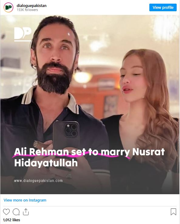 ان خبروں کا آغاز اس وقت ہوا جب علی رحمان نے انسٹاگرام پر ڈیٹ نائٹ کے کیپشن کے ساتھ نصرت کے ساتھ تصاویر شیئر کیں، جس کے بعد ان کے رشتے کے بارے میں چہ مگوئیاں شروع ہو گئیں۔تاہم ایک حالیہ انٹرویو میں علی رحمان نے ان افواہوں کی تردید کرتے ہوئے کہا کہ میں ابھی شادی نہیں کر رہا، اور سوشل میڈیا صارفین مجھے ان دوستوں کے ساتھ جوڑ دیتے ہیں جن کے ساتھ میں تصویریں لیتا ہوں۔