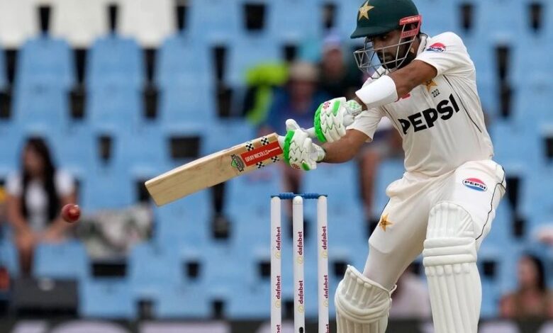 کیپ ٹاؤن(شوبز ڈیسک) پاکستان اور جنوبی افریقا کے درمیان ٹیسٹ میچ کیپ ٹاؤن جاری ہے ۔ پہلے بلے بازی کرتے ہوئے جنوبی افریقا کی ٹیم پہلی اننگز میں 615 رنز بنا کر آؤٹ ہوئی تھی ۔آج تیسرے روز پاکستان کے بابر اعظم نے 31 اور محمد رضوان نے 9 رنز کے ساتھ تیسرے دن کے کھیل کا آغاز کیا۔پہلے سیشن کے آغاز کے کچھ ہی دیر بعد جنوبی افریقا کے خلاف پاکستان کی چوتھی وکٹ 118رنز پر گر گئی جب بابر اعظم 58 رنز بنا کر آؤٹ ہوئے۔