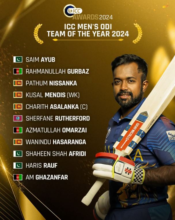 ون ڈے ٹیم آف دی ایئر میں پاکستان کے 3، سری لنکا کے 4، افغانستان کے 3 اور ویسٹ انڈیز کا ایک کرکٹر شامل کیا گیا ہے
