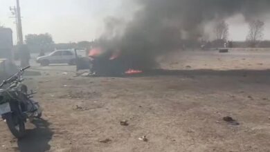 مظاہرین کی پولیس موبائل کو آگ،تین اہلکار زخمی